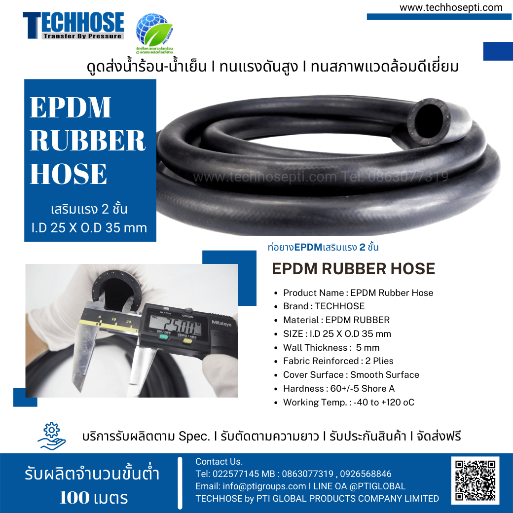 รับผลิตท่อยางทนแรงดัน ท่อยางEPDM เสริมผ้าใบ 2 ชั้น ทนสารเคมี ทนแรงดัน 25 Bar Tel: 0 2489 5525 / 09 2656 8846